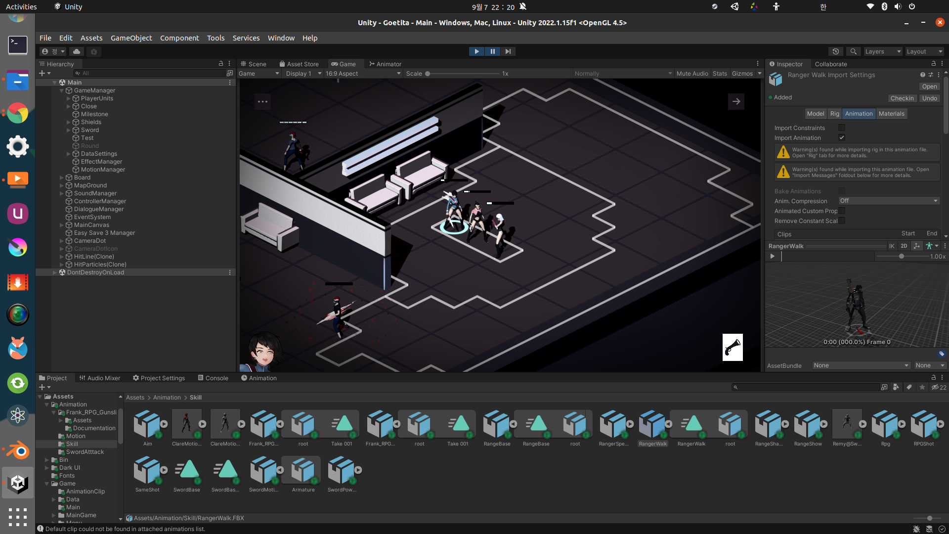 다만 독특한 스킬 시스템 때문에 스킬을 하나 추가 할때 모션을 두개씩을 추가하는 상황이 발생하고 있다. 모션을 많이 사용하게 되는 스킬 시스템이여서 에셋으로는 한계가 있어서 직접 만들고 있는 중이다.