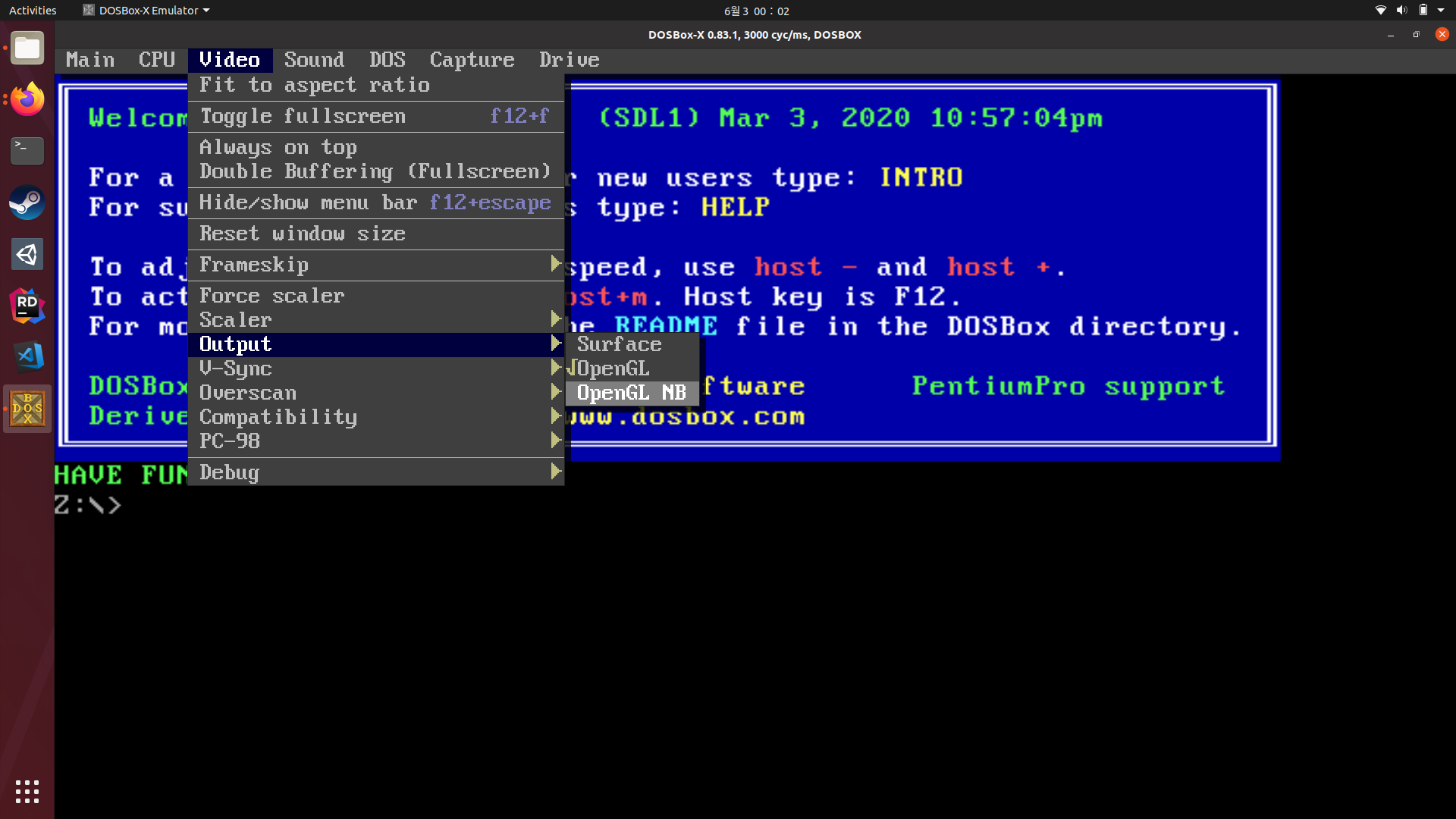 <도스박스 사용법> dosbox.conf - [render] (프레임 스킵, 비율 4:3 교정, 화면 보정 처리 등)